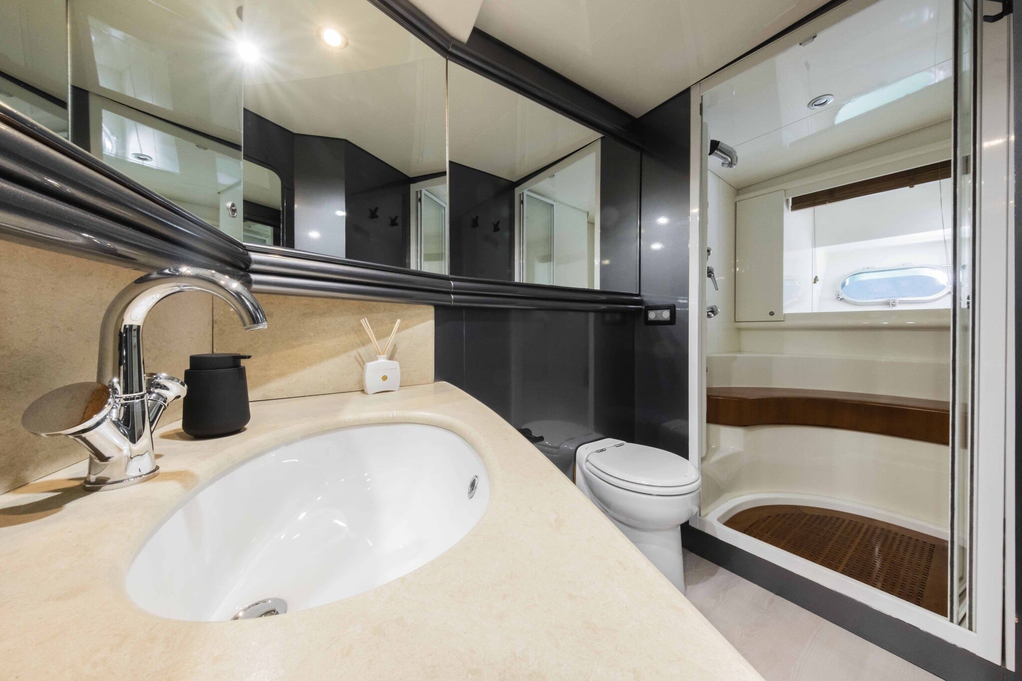 Im Inneren finden Sie luxuriöse Kabinen, einen geräumigen Salon und alle Annehmlichkeiten, die Sie für eine erstklassige Seereise benötigen. Darüber hinaus verfügt die Yacht über ein hochwertiges Surround-Soundsystem und perfekt gestaltete Bereiche zum Entspannen oder Feiern mit Familie und Freunden.