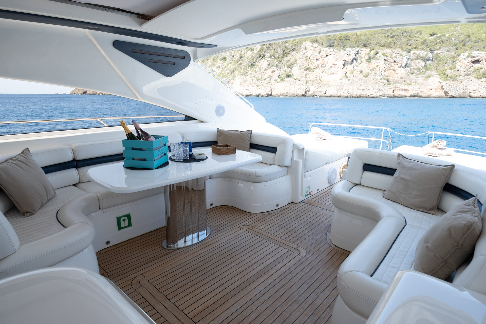 Wenn Sie nach einem Bootsverleih auf Ibiza suchen, ist die Princess V65 Princess Juliet eine exklusive Wahl ist die perfekte Wahl, wenn Sie Ibiza mit Eleganz, Leistung und Komfort erkunden möchten. Mit 20 Metern Länge bietet diese Yacht reichlich Platz für anspruchsvolle Gruppen, die das Beste vom Mittelmeer erleben wollen.