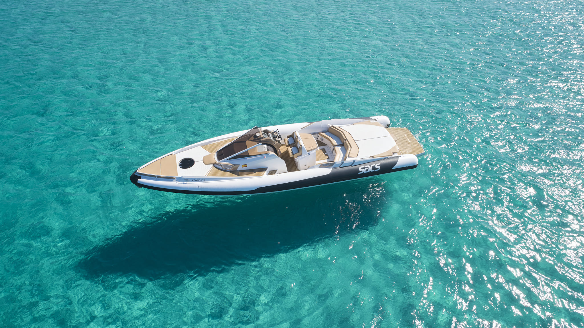 Wer einen tag voller Adrenalin und Stil auf dem Meer sucht, für den ist das Erlebnis eines Bootsverleihs auf Ibiza mit der Sacs 40 Carrera genau die richtige Wahl. Diese leistungsstarke RIB besticht durch ihr markantes Design und starke Performance. Dank des geräumigen Layouts eignet sie sich perfekt, um die Küste Ibizas zu erkunden oder stilvoll nach Formentera überzusetzen.
