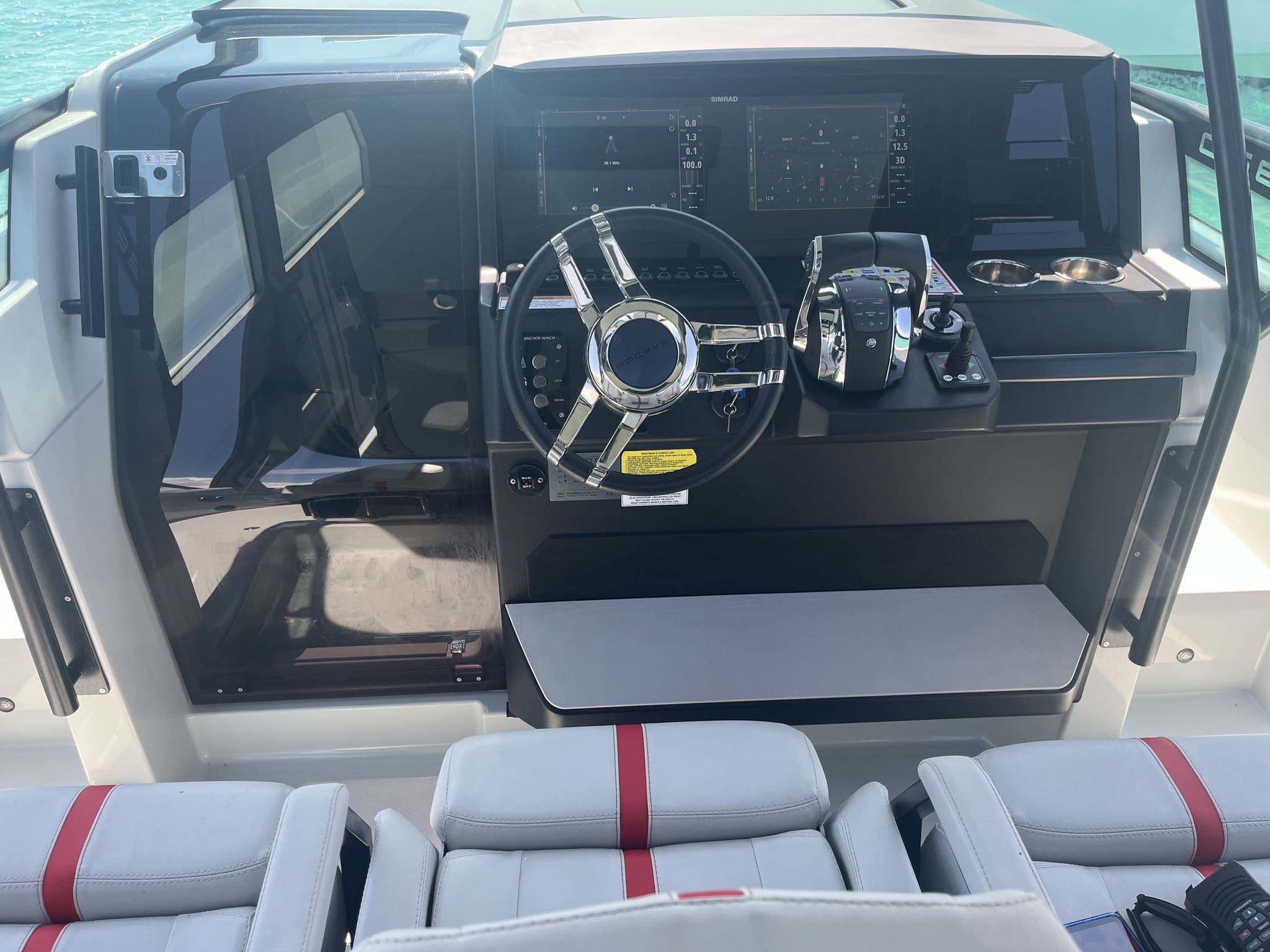 Mit einer Länge von 11 Metern verfügt dieses Motorboot über ausklappbare Seitenterrassen, ein Sonnendeck, eine Kabine mit Doppelbett, ein voll ausgestattetes Badezimmer und ein vollständig digitales Steuerpult. Ausgestattet mit Mercury-Außenbordmotoren bietet es Stabilität, Effizienz und eine sanfte Fahrt, auch bei längeren Strecken.