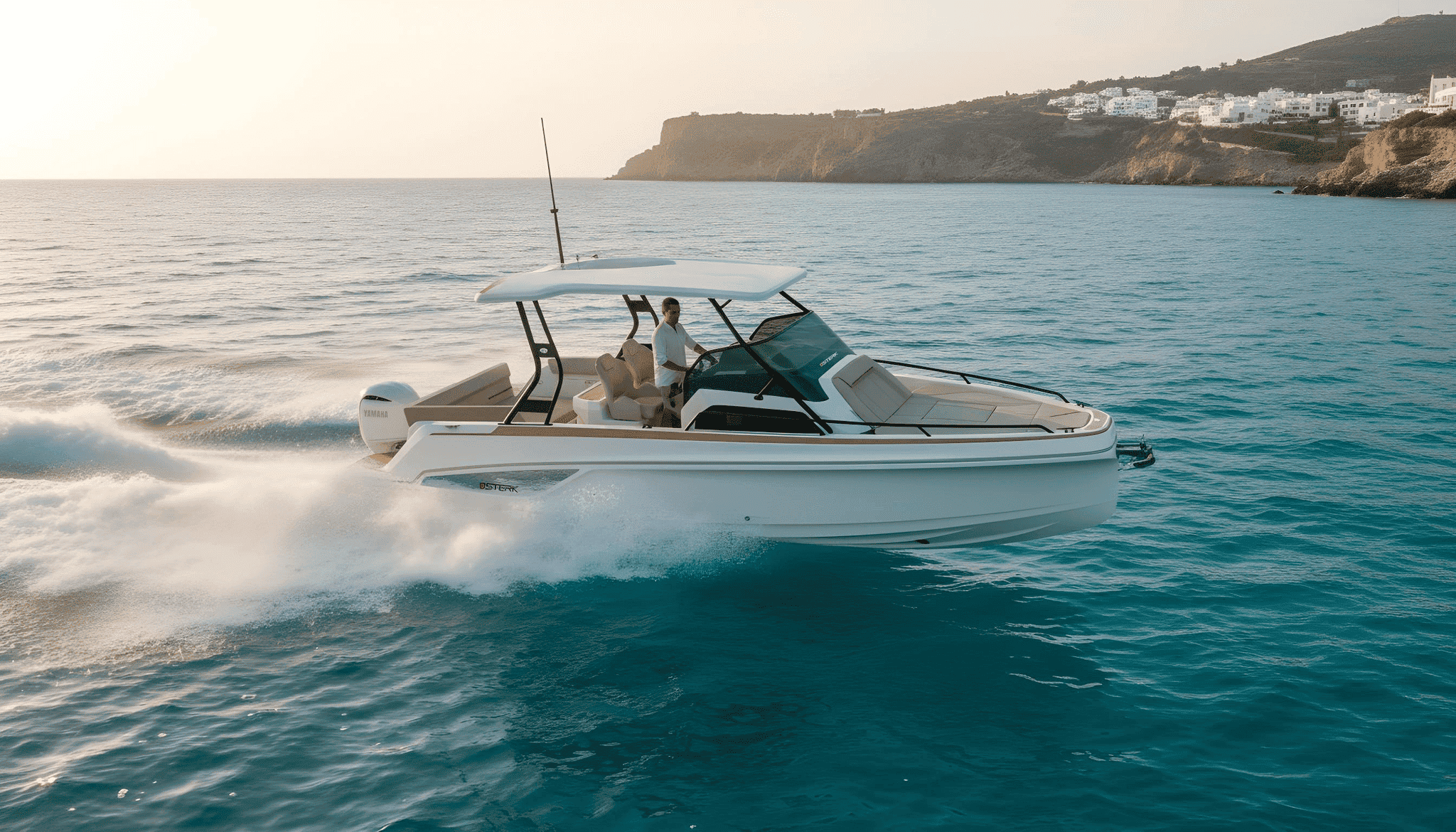 Our Sterk 26 Lux features an innovative hull design. This ensures a very smooth and precise navigation. The cockpit area is wide and modular. Its stern solarium is perfect for total relaxation. It is the ideal boat for cruising to Formentera. The helm station is ergonomic and modern. It includes the latest technology for your safety. At Ibiza Nautik, we manage every single detail. We want your experience to be perfect from the start.