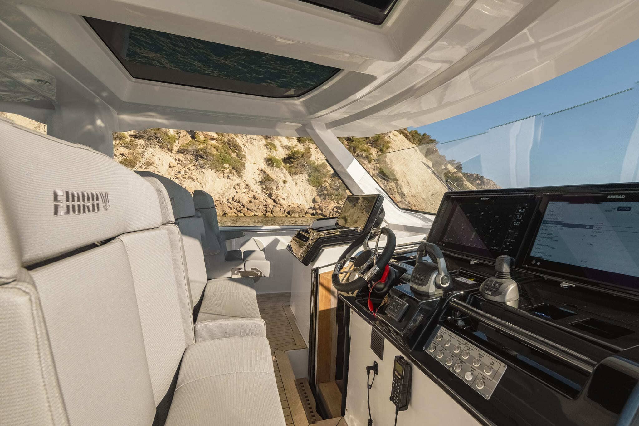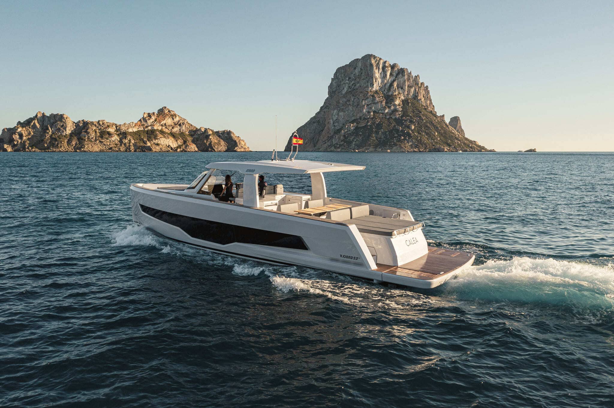 L’option la plus exclusive pour la location de bateau à Ibiza est le Fjord 53XL Calea. Ce modèle règne en maître sur les « day cruisers ». Il s’agit du navire le plus grand et luxueux de la gamme Fjord. Avec presque 17 mètres, sa présence impose le respect sur l’eau. L’espace disponible sur le pont rivalise avec des yachts bien plus grands. C’est le choix des perfectionnistes. Chez Ibiza Nautik, nous adorons ce géant du design.