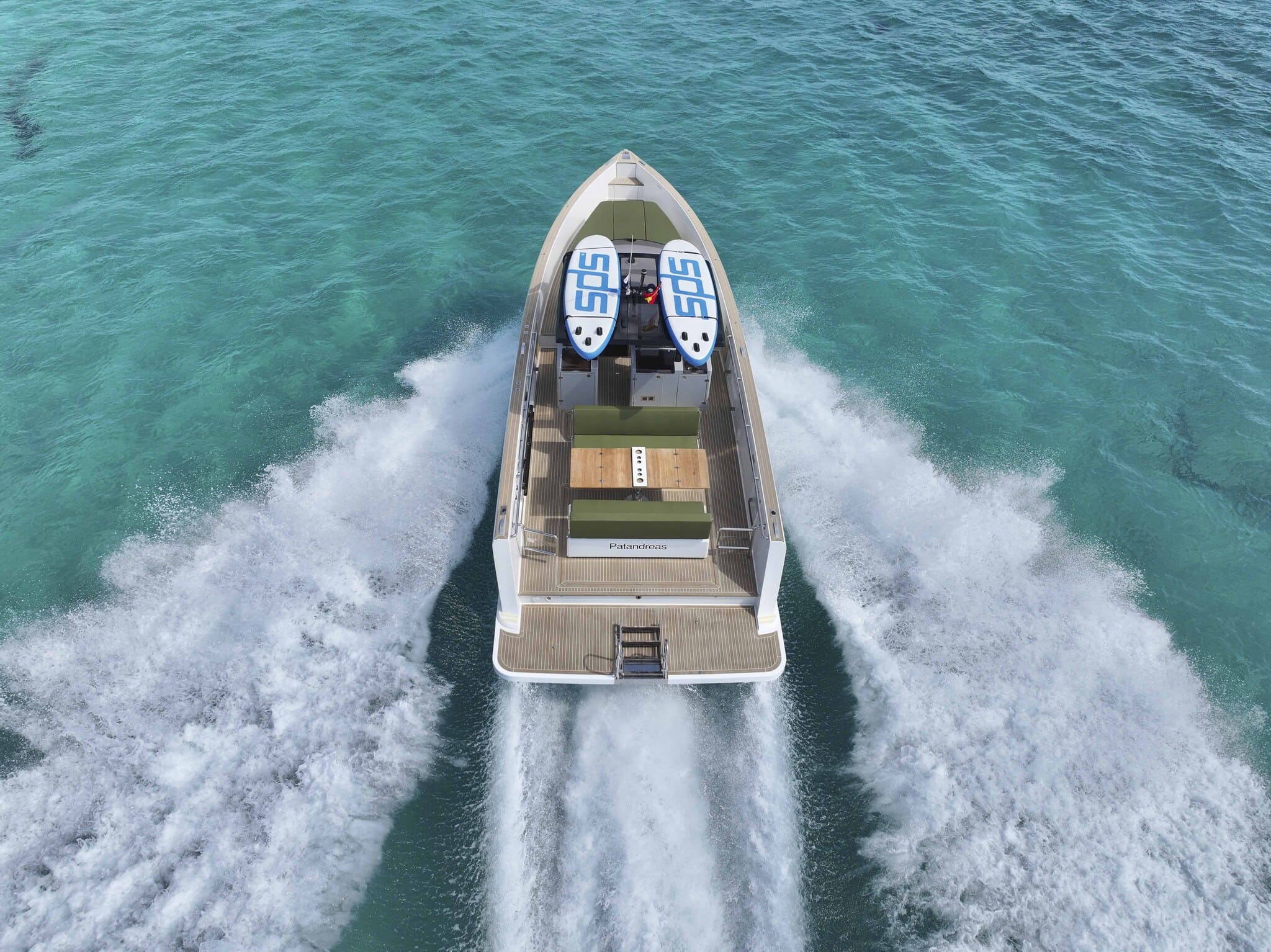 Le Fjord F40 Patandreas se distingue par son style innovant et son espace généreux. Avec une longueur de 12 mètres, il offre un espace extérieur conçu pour un maximum de plaisir. Son solarium à l’avant et à l’arrière, ainsi que sa large zone ombragée, garantissent une traversée confortable et relaxante. De plus, son moteur puissant permet de se déplacer rapidement entre les plus belles criques de l’île. Ce yacht est idéal aussi bien pour les groupes d’amis que pour les familles souhaitant explorer la côte en toute intimité et confort.