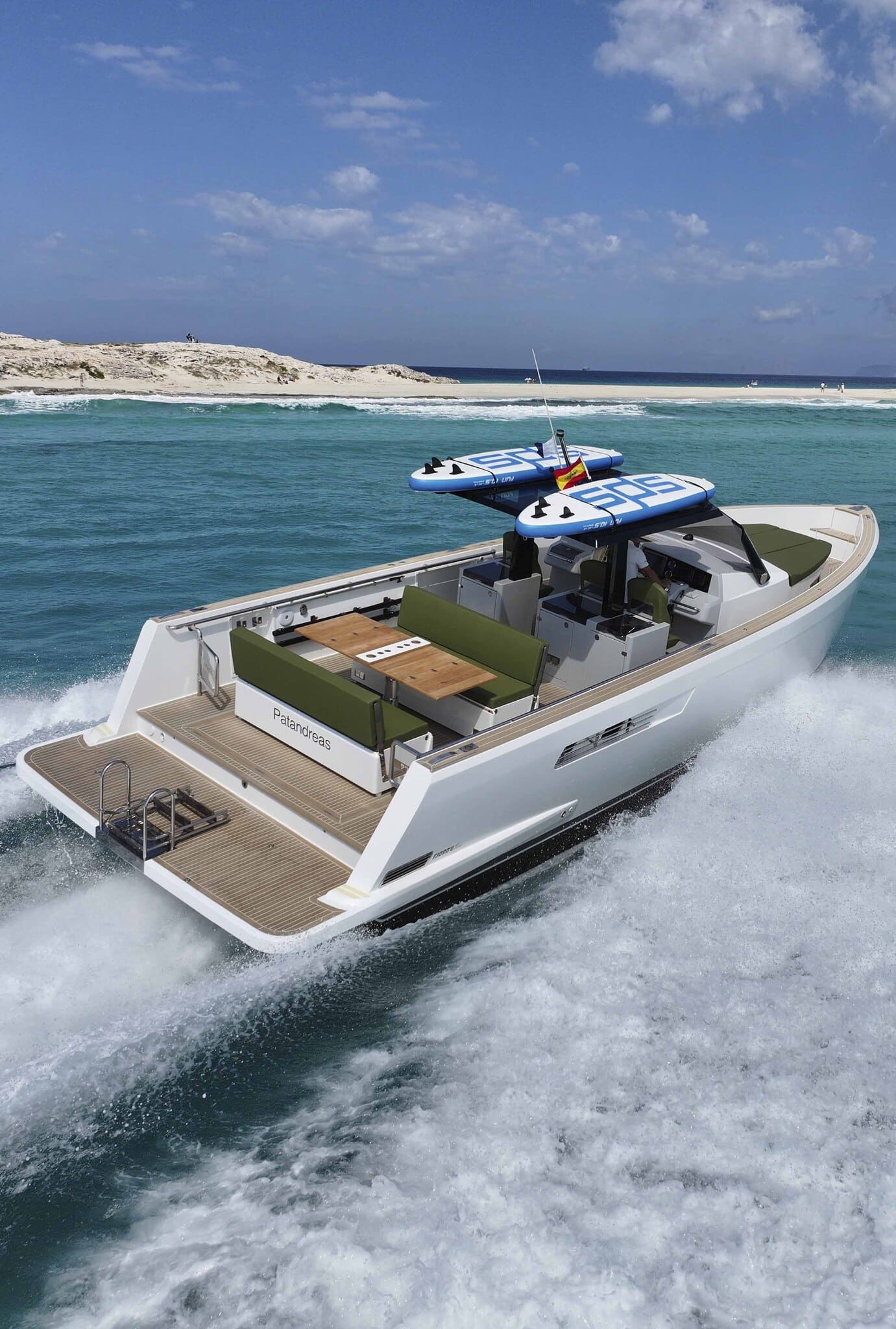 Si vous cherchez à faire la location d’un bateau à Ibiza, le Fjord F40 Patandreas est le choix parfait pour une expérience luxueuse en mer. Son design avant-gardiste, sa puissance et son confort en font une option idéale pour explorer les eaux cristallines d’Ibiza et de Formentera. Profitez d’un bateau équipé des dernières technologies et de toutes les commodités, conçu pour une navigation sûre et agréable.