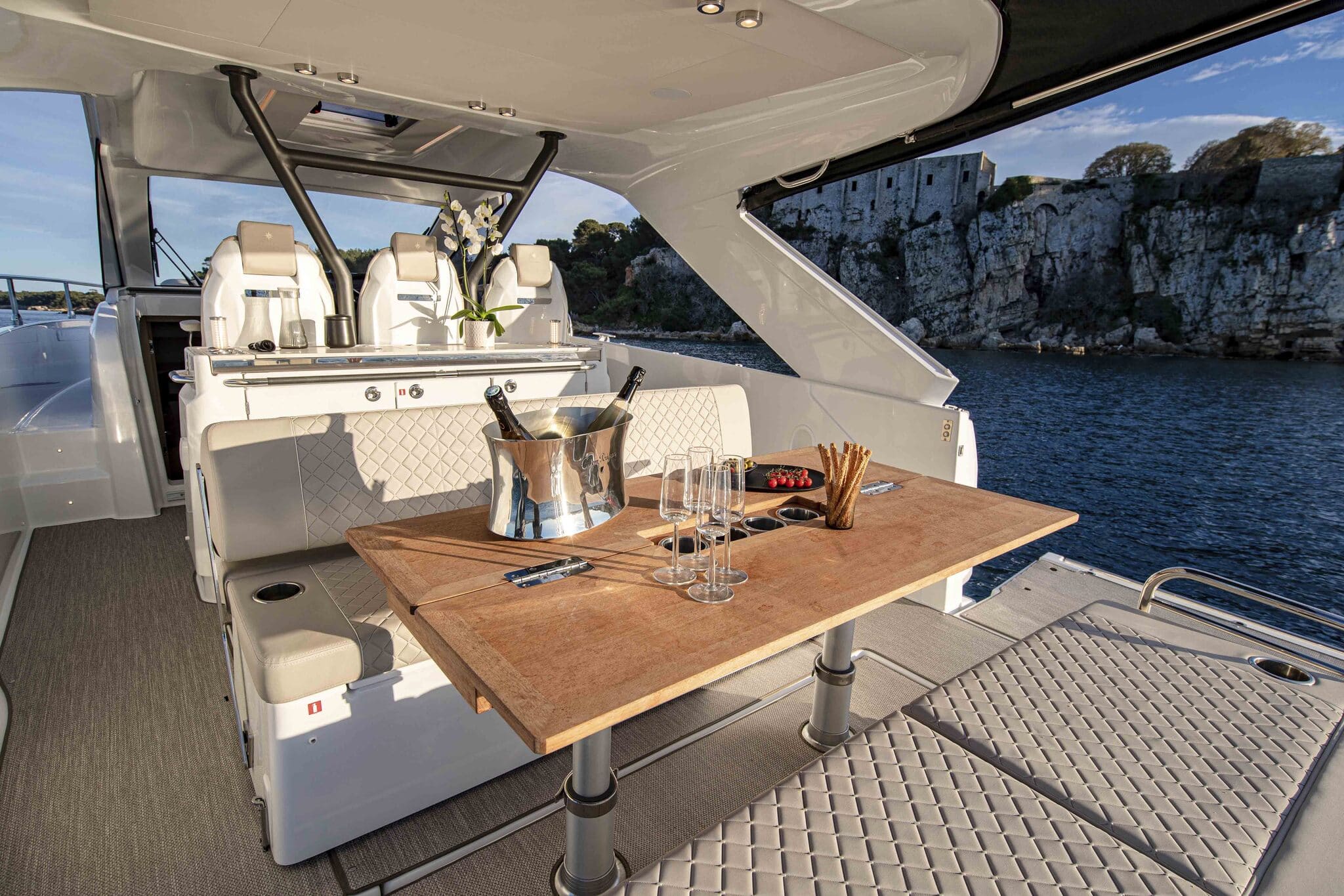 Si vous préférez une option plus compacte mais tout aussi polyvalente, nous vous suggérons le Jeanneau Cap Camarat 7.5 Jarana. Ce modèle agile et dynamique est idéal pour explorer des criques cachées en toute liberté, vous permettant de découvrir les plus beaux endroits secrets d’Ibiza.