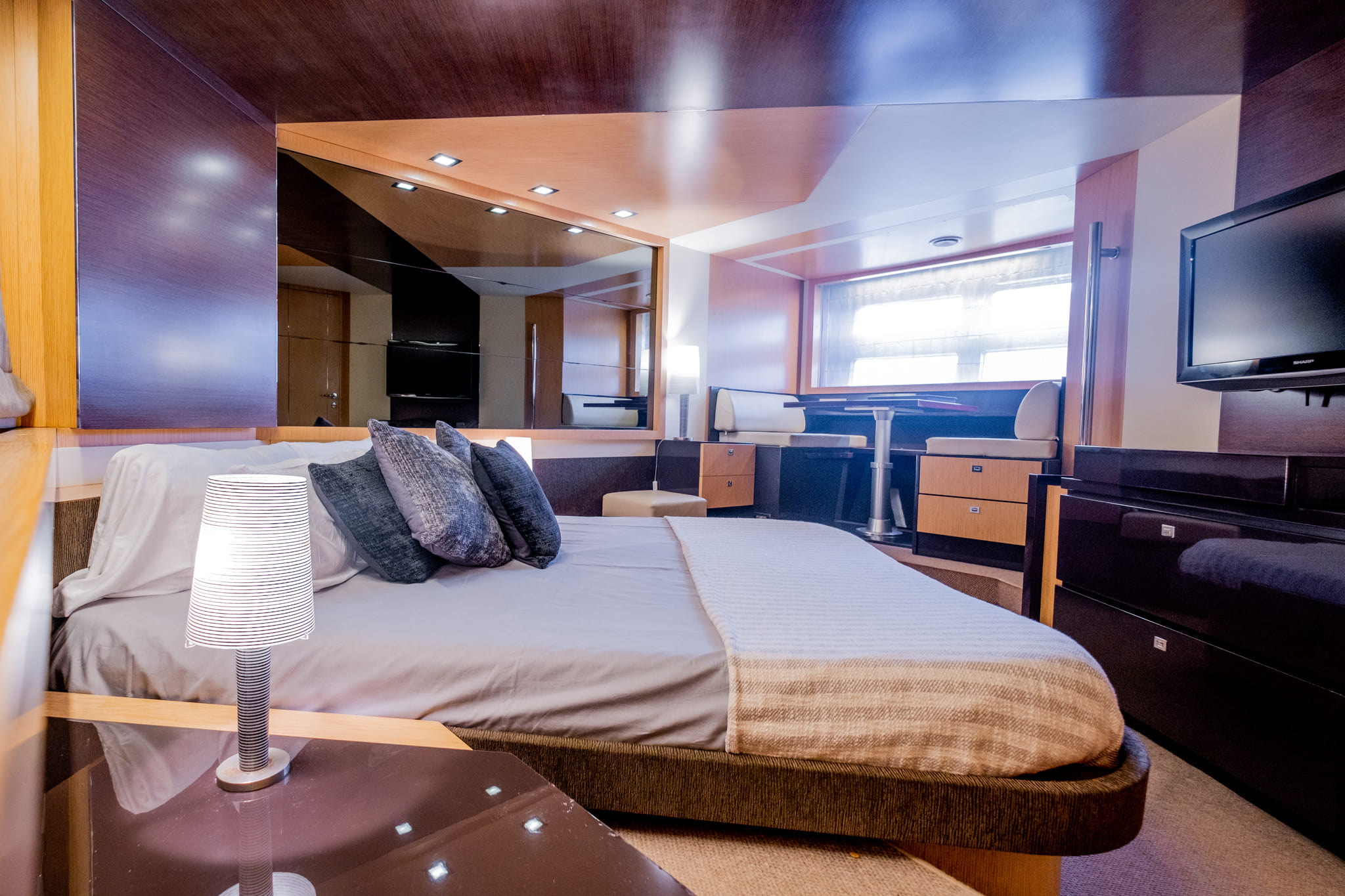 Con más de 21 metros de eslora, ofrece amplios espacios tanto interiores como exteriores: gran solárium en proa y popa, zona de comedor, bar, cabina master con baño en suite y dos cabinas adicionales. Cada rincón ha sido pensado para ofrecer máximo confort y privacidad.