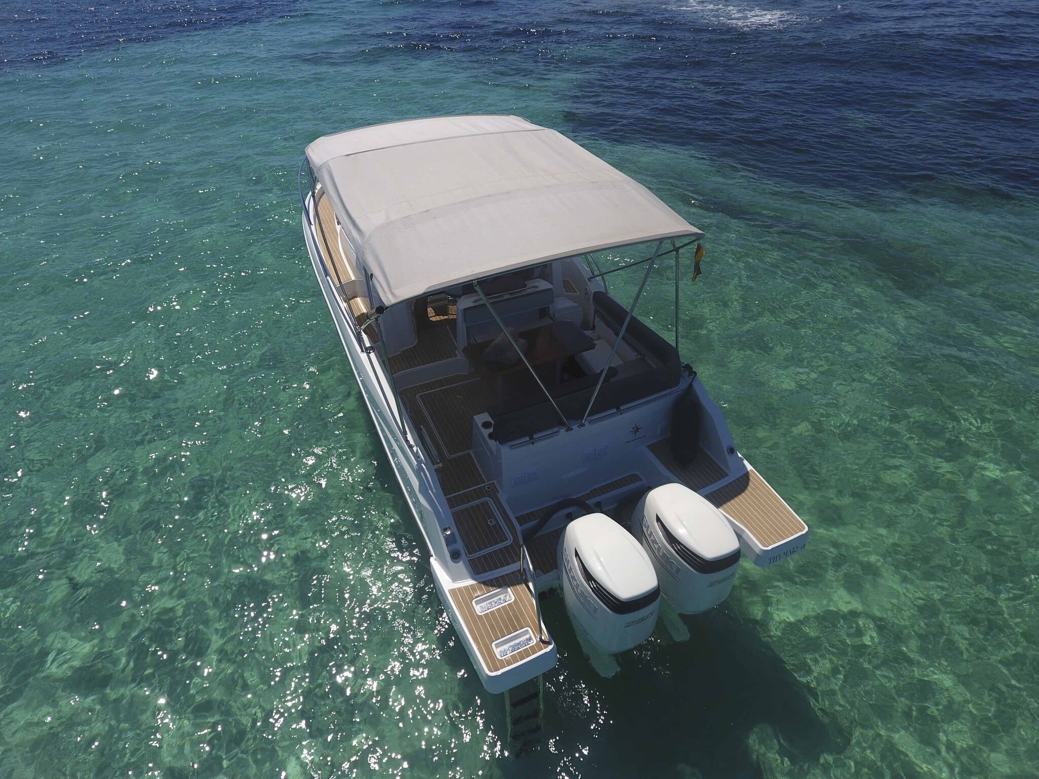Su motorización potente garantiza una navegación ágil y estable, ideal tanto para trayectos rápidos entre Ibiza y Formentera como para jornadas de fondeo en enclaves paradisíacos.