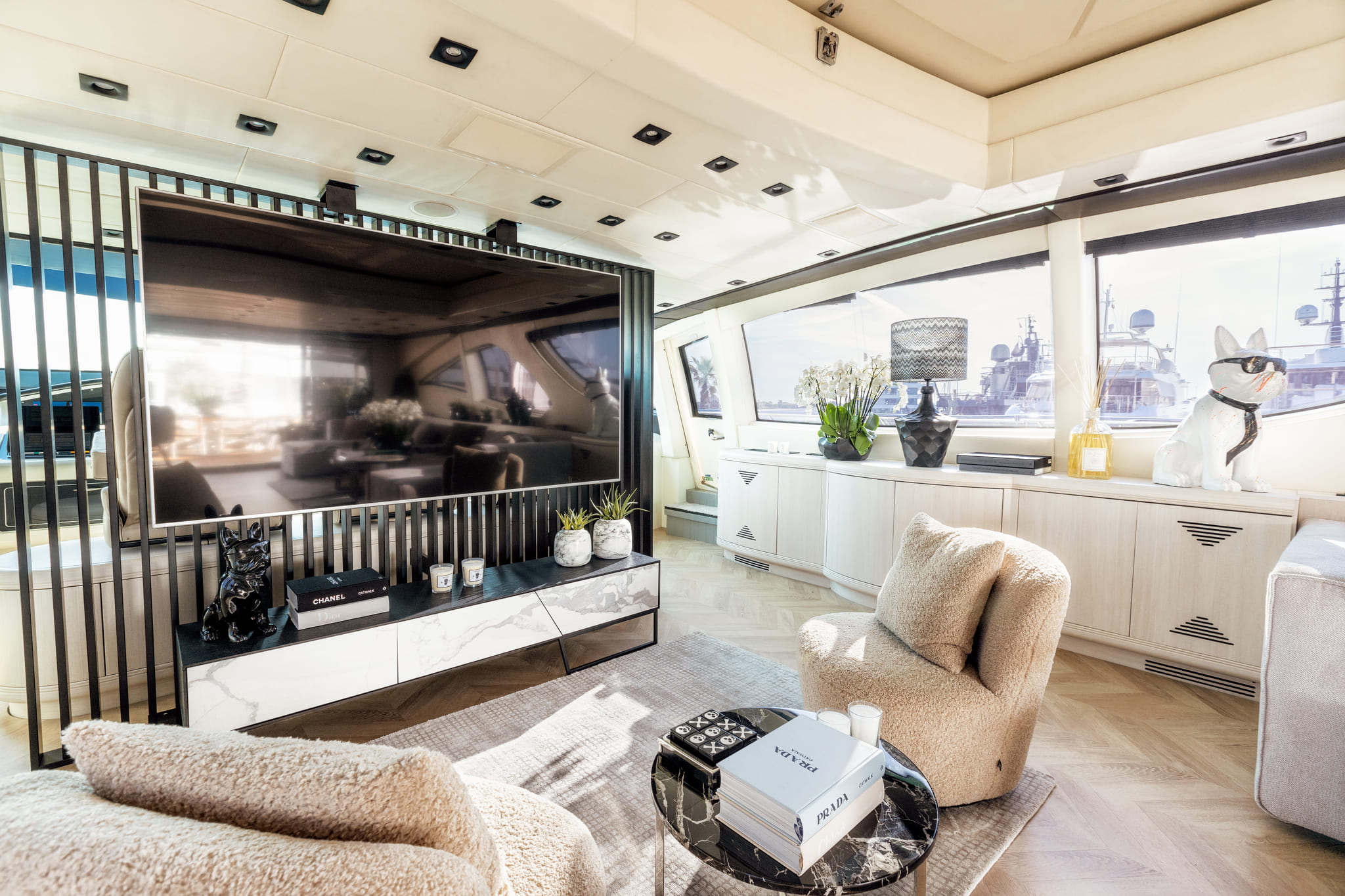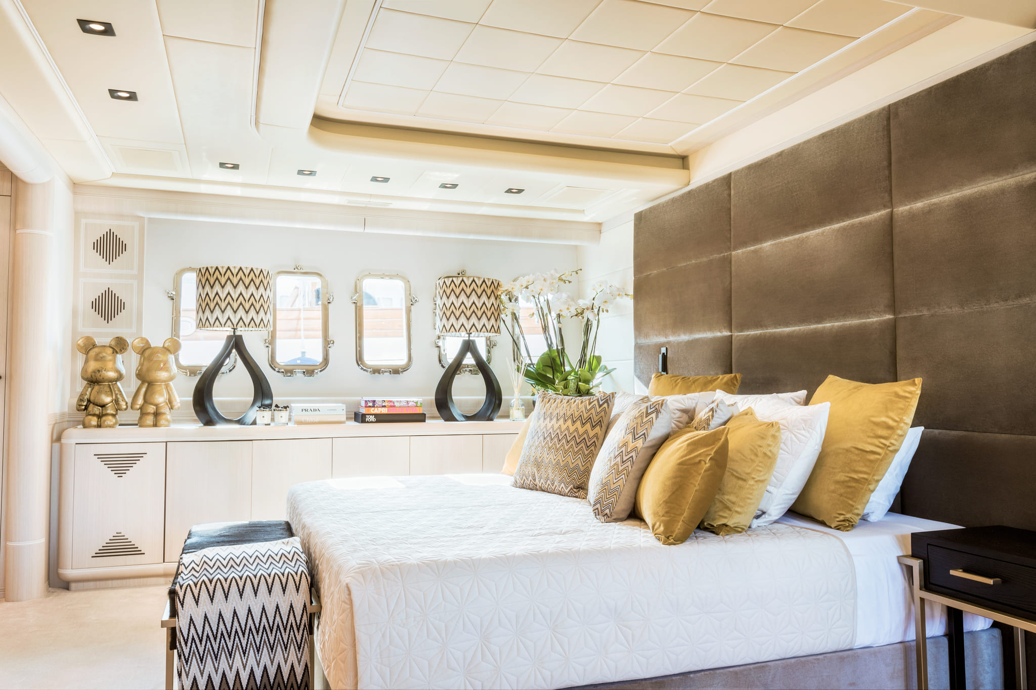 Con capacidad para hasta 12 invitados de día y 10 para pernoctar, la Mrs Grey ofrece 5 cabinas, interiores modernos, amplias terrazas y flybridge con jacuzzi. Su equipo de tripulación está preparado para ofrecer servicio de restaurante, coctelería y asistencia personalizada durante toda la jornada. Sus motores MTU permiten alcanzar velocidades sorprendentes con total estabilidad y seguridad.