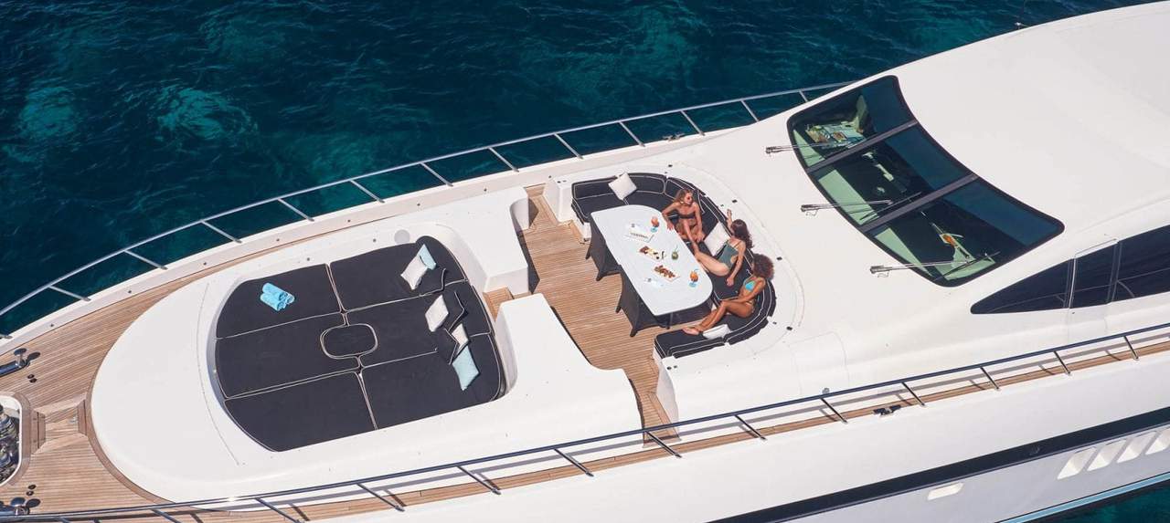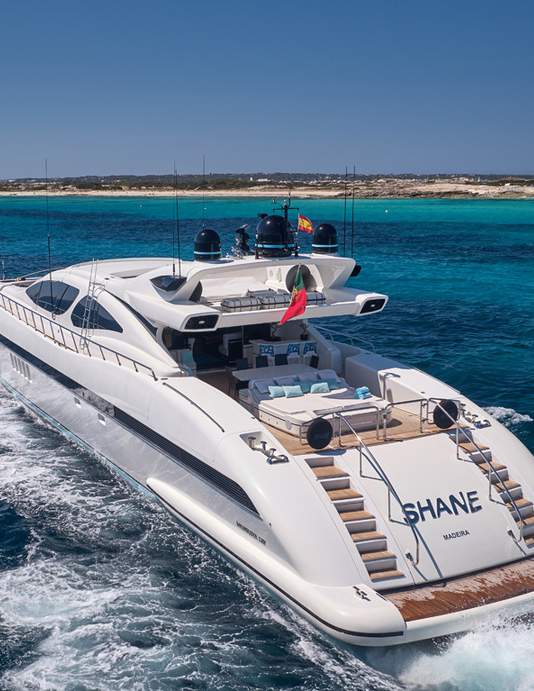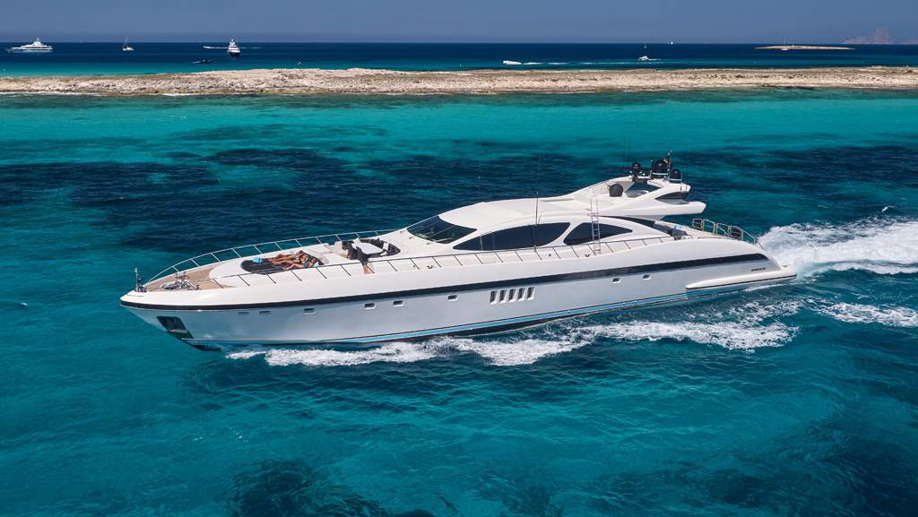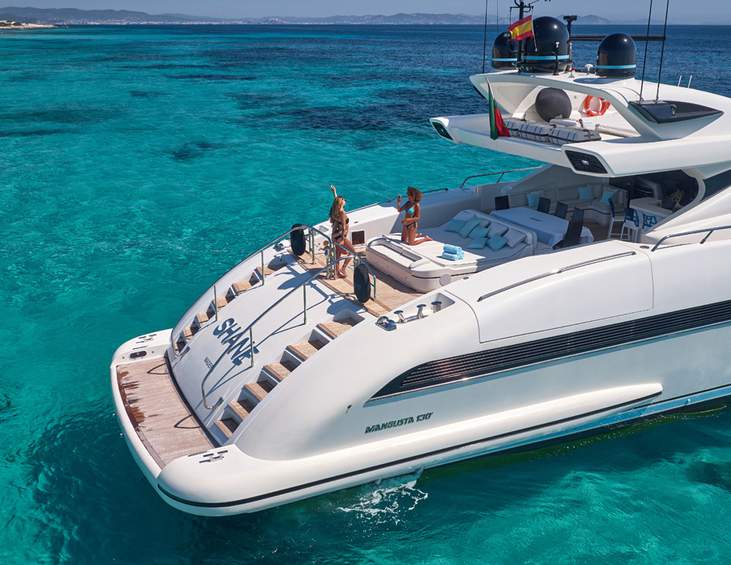Elige el plan definitivo de alquilar barco en Ibiza a bordo de la Mangusta 130 Mrs Grey y transforma tu estancia en la isla en una experiencia de otro nivel. En Ibiza Nautik, navegamos contigo hacia el lujo.
