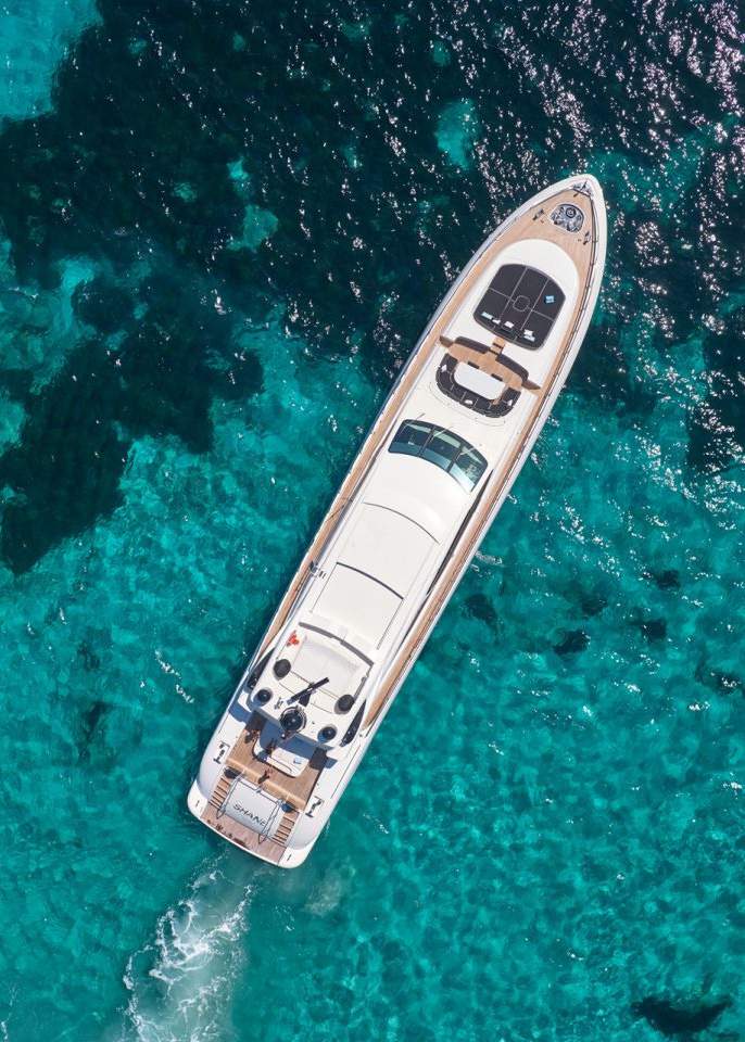 Air view of Baia 80 Shady - Superyacht in Ibiza