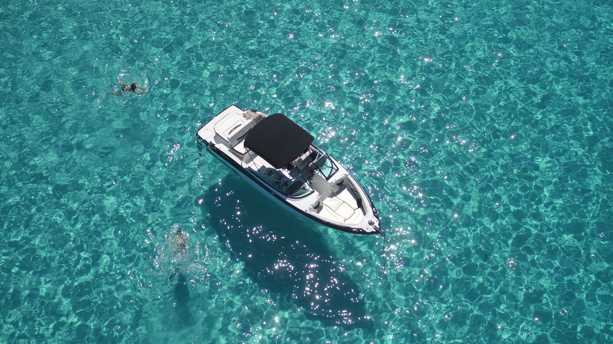 A bordo encontrarás amplios asientos acolchados, solárium en proa, toldo bimini, ducha, música Bluetooth y una plataforma de baño muy cómoda. Todo está diseñado para maximizar la comodidad sin renunciar a la potencia ni al estilo.