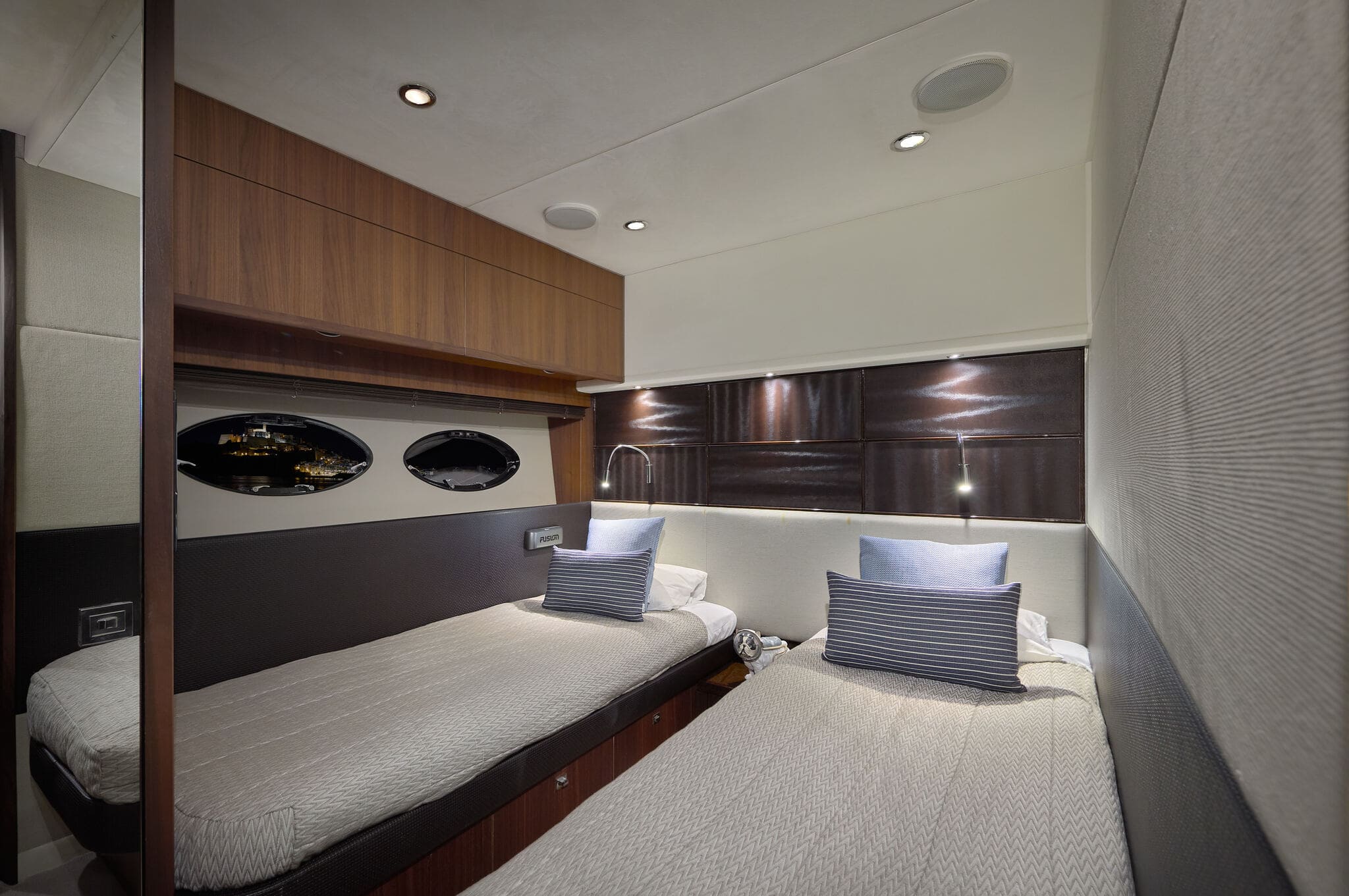 La Princess V72 Ruby Tuesday está equipada con dos motores Caterpillar de 1.650 CV, garantizando velocidad y estabilidad en cualquier ruta. Su diseño moderno incluye amplio solárium, sofás exteriores, mesa de comedor y plataforma de baño extendida. El interior sorprende con tres camarotes dobles, salón con vistas panorámicas y cocina equipada. Descubre más sobre la marca en su Instagram oficial.